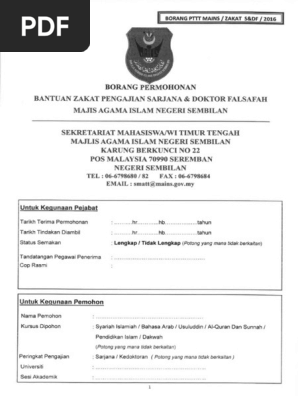 Borang Permohonan Bantuan Zakat Pengajian Sarjana Dan Doktor Falsafah 2016 Pdf
