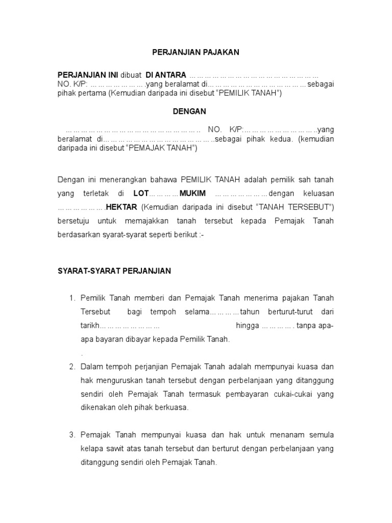 Surat Perjanjian Sewa Tanah Di Indonesia Dan Contohnya